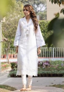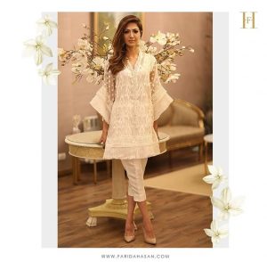 Farida Hasan’s designs always seem nostalgic, something that our grannies had worn and will look great even now! The non print fabrics, delicate embroidery and simple cuts make Hasan’s design a win a win this season!