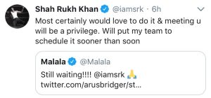 Well well, seems like Malala is a SRK fan too… but hey, who isn’t? 💕