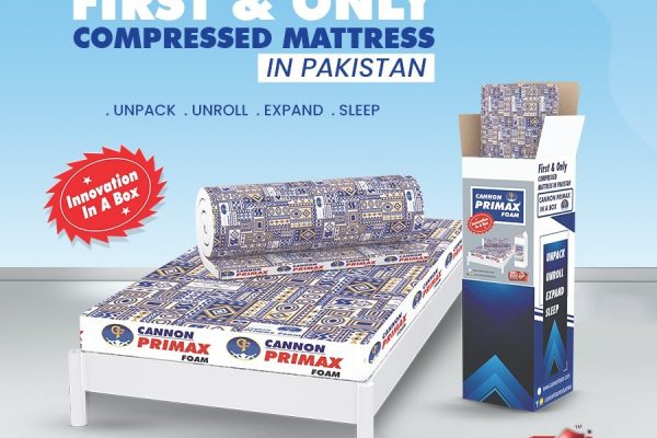 Cannon Primax Foam has successfully launched Pakistan’s first-ever compressed mattress in a box for the convenience and comfort of its clients. This masterpiece is known as “Primax in a Box” and has already started to take the nation by storm.“Primax in a box” is available to all Cannon Primax Foam shops. “Primax in a box” is the first and only mattress certified by “Pakistan Standards & Quality Control Authority”. This is not only a mattress but an innovation to cater to the needs of all those looking for comfort and “a good night sleep”.
