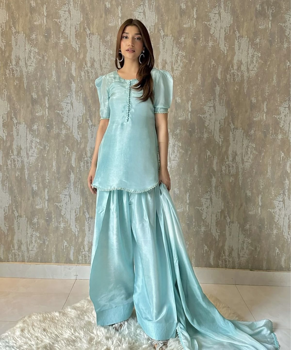 Farshi shalwar, a timeless and regal fashion statement, is making a grand comeback this Eid. Originally worn by royals, this traditional ensemble features an ultra-wide, flowing shalwar that gracefully trails behind, creating a luxurious and elegant look. If you’re planning to wear a farshi shalwar this Eid, here’s everything you need to know about styling and carrying it with confidence.